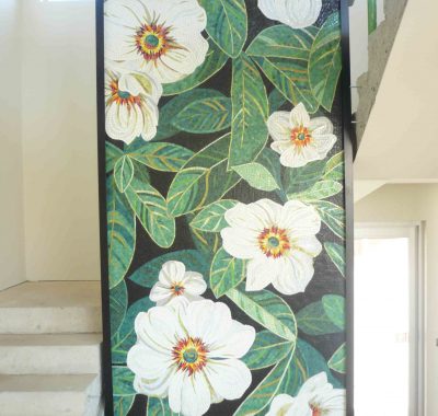 Glass mosaic artwork is a specialty of ours, in which we take great pride. Indoor or outdoor, a beautiful, artistic statement feature brings elegance to any area.